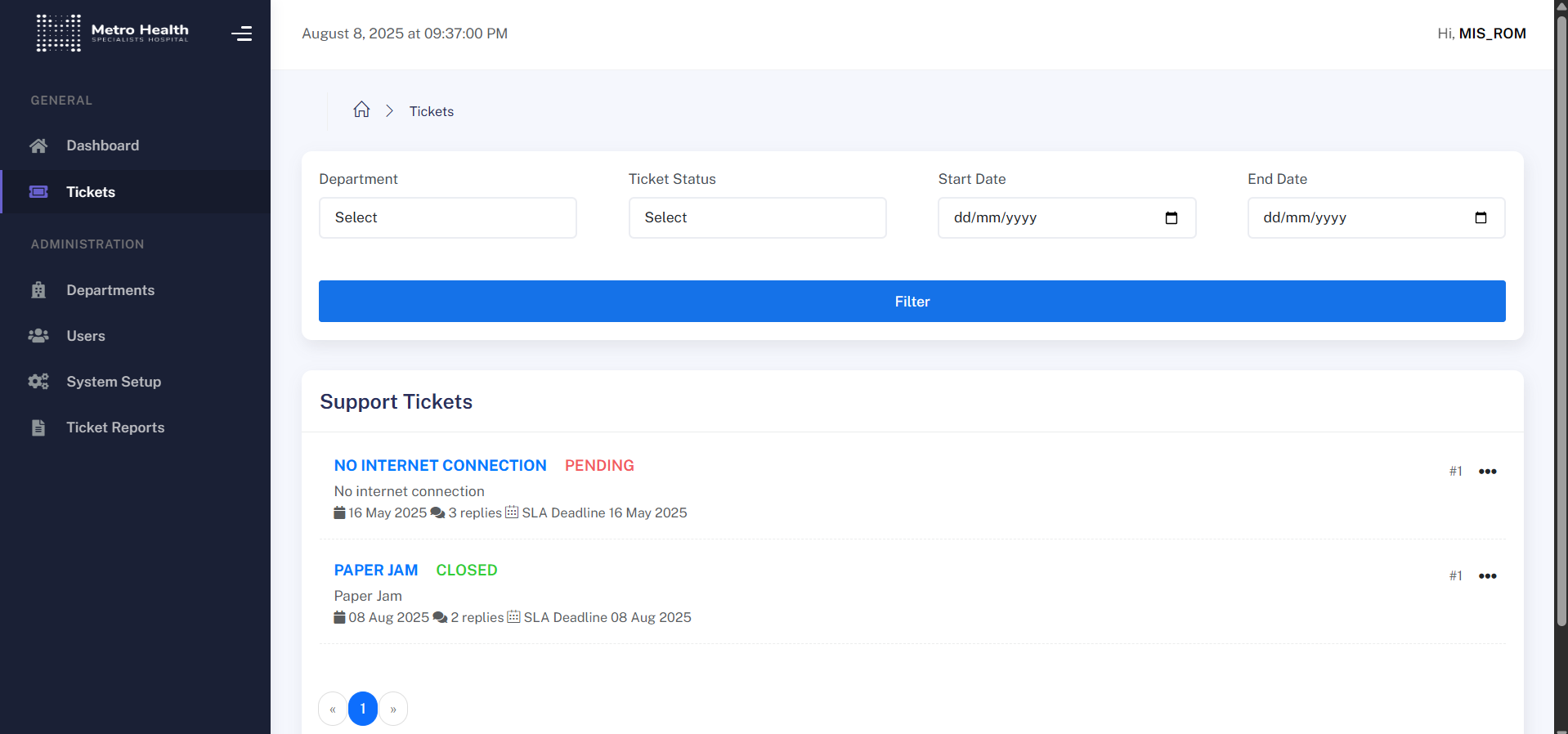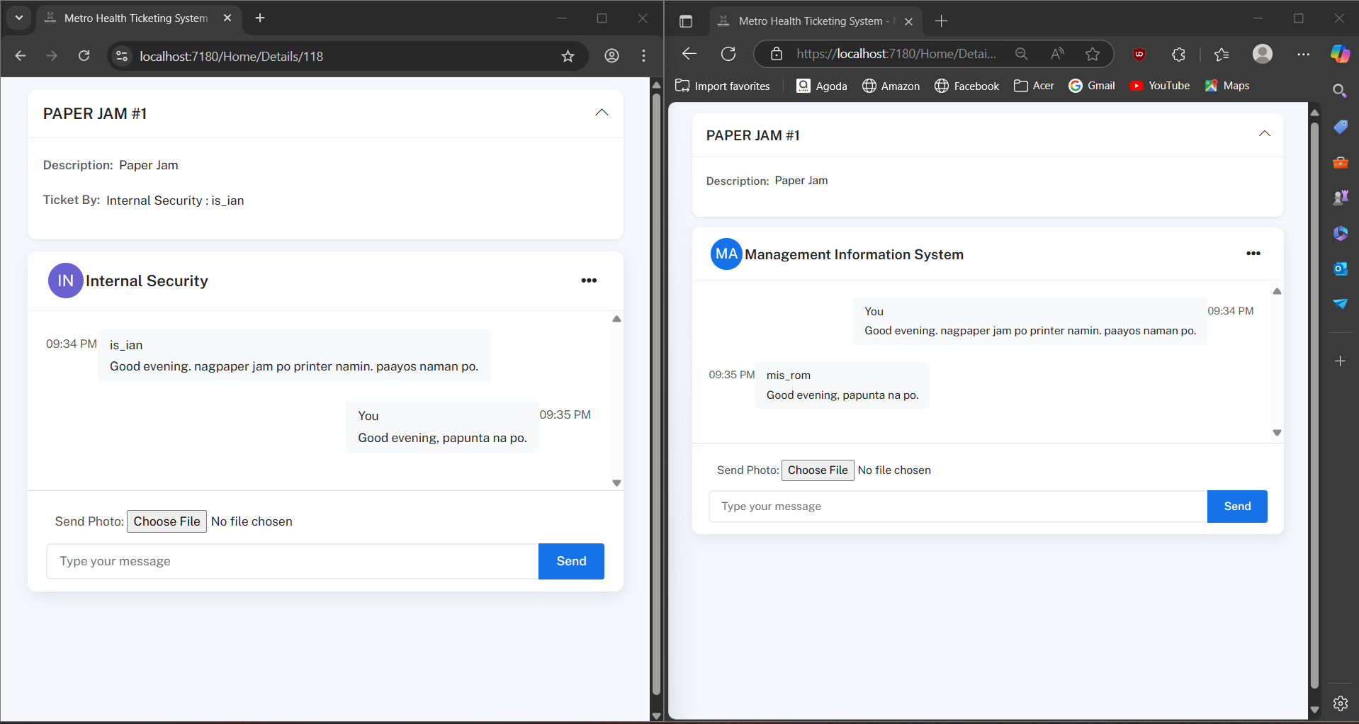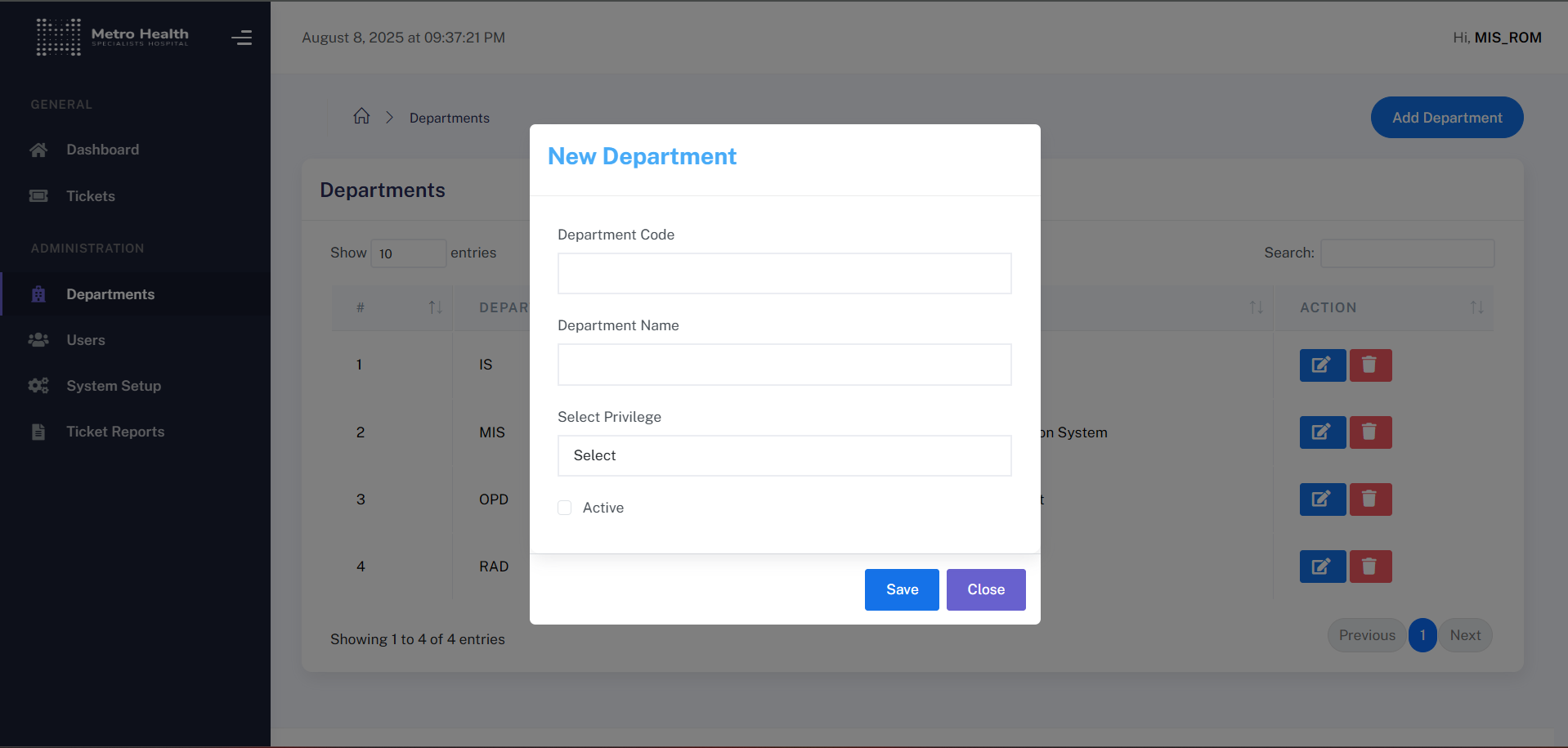 This is an in-house project I developed while working as an I.T. Support Staff at a private hospital. The system is designed to manage departmental support tickets and facilitate seamless communication between employees and the I.T. Support team. Built using ASP.NET Core MVC and MSSQL, it includes a real-time chat support feature that enables hospital staff to directly interact with I.T. personnel for faster issue resolution.